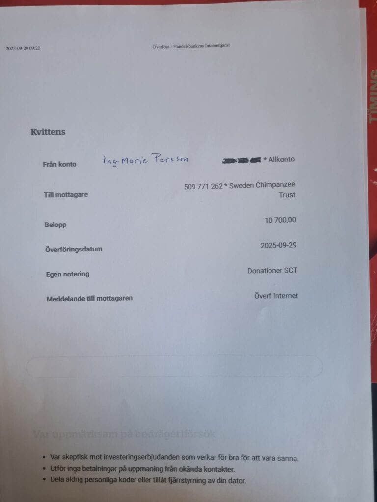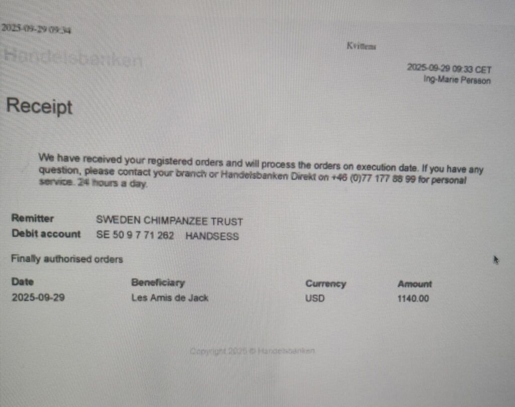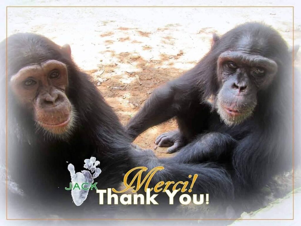 Att vi kan hjälpa Roxane och Franck som med så stor passion, omtanke, kärlek tar hand om schimpanser och andra primater som vi människor berövat mödrar, familj och frihet, gör mig så oerhört tacksam.